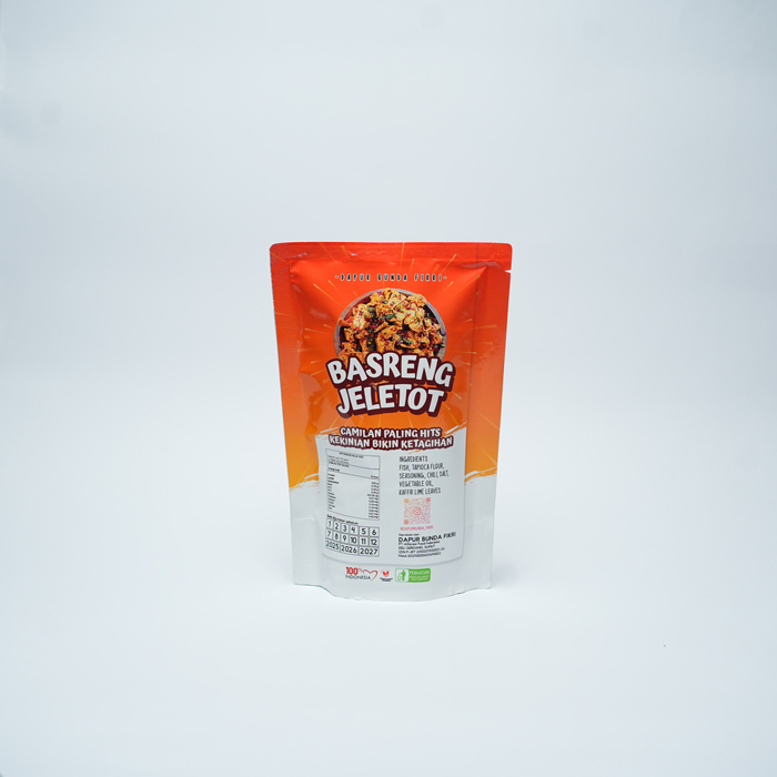 Enjoy the spicy and savory crunch of Basreng Daun Jeruk—crispy fried fishball slices seasoned with special spices and the refreshing aroma of kaffir lime leaves. Perfect for movie nights, work breaks, or casual snacking. Bold flavor that keeps you coming back from the first bite!