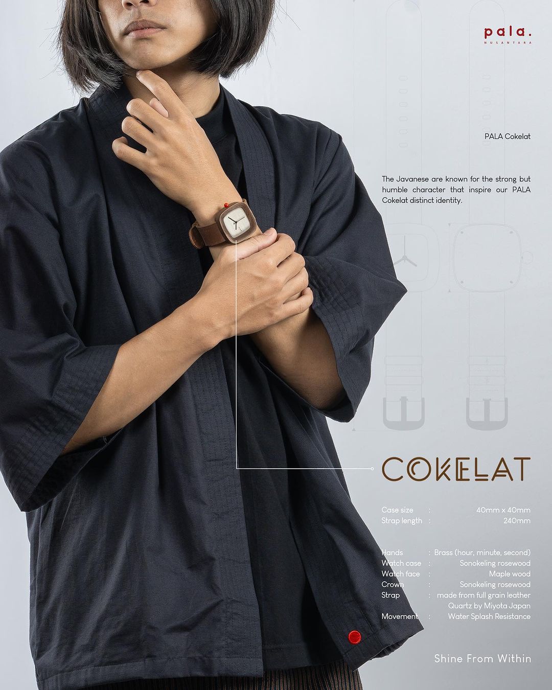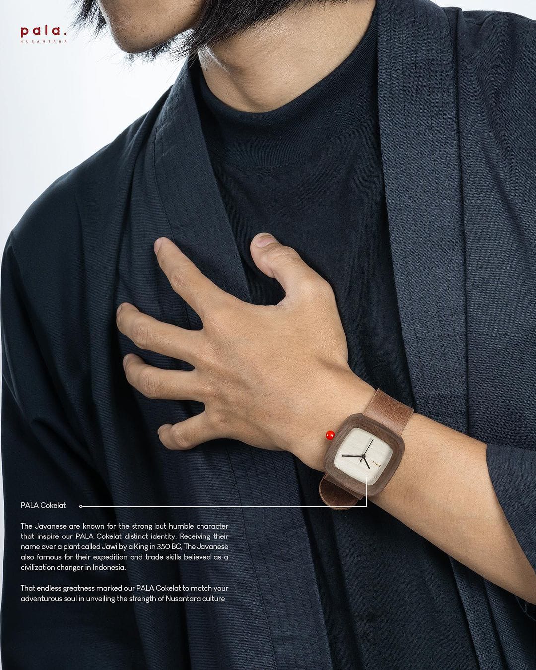 PALA Cokelat watch an exclusive identity. On PALA Cokelat watch, we adopt the color of earthly brown or the color of soil, as the symbol of Javanese people in their humble thinking and acting.
