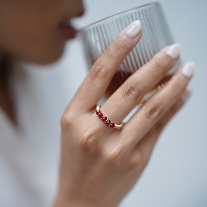 A dainty ring braided from gold-plated copper wire and sparkling crystals, CrystaLace features a lace-like pattern full of elegance. Each piece is handmade with care, symbolizing grace in simplicity. It’s lightweight, non-adjustable, and available in various colors to match your mood or favorite outfit. For those who love a subtle yet charming touch, CrystaLace is the little detail that makes a big impression.